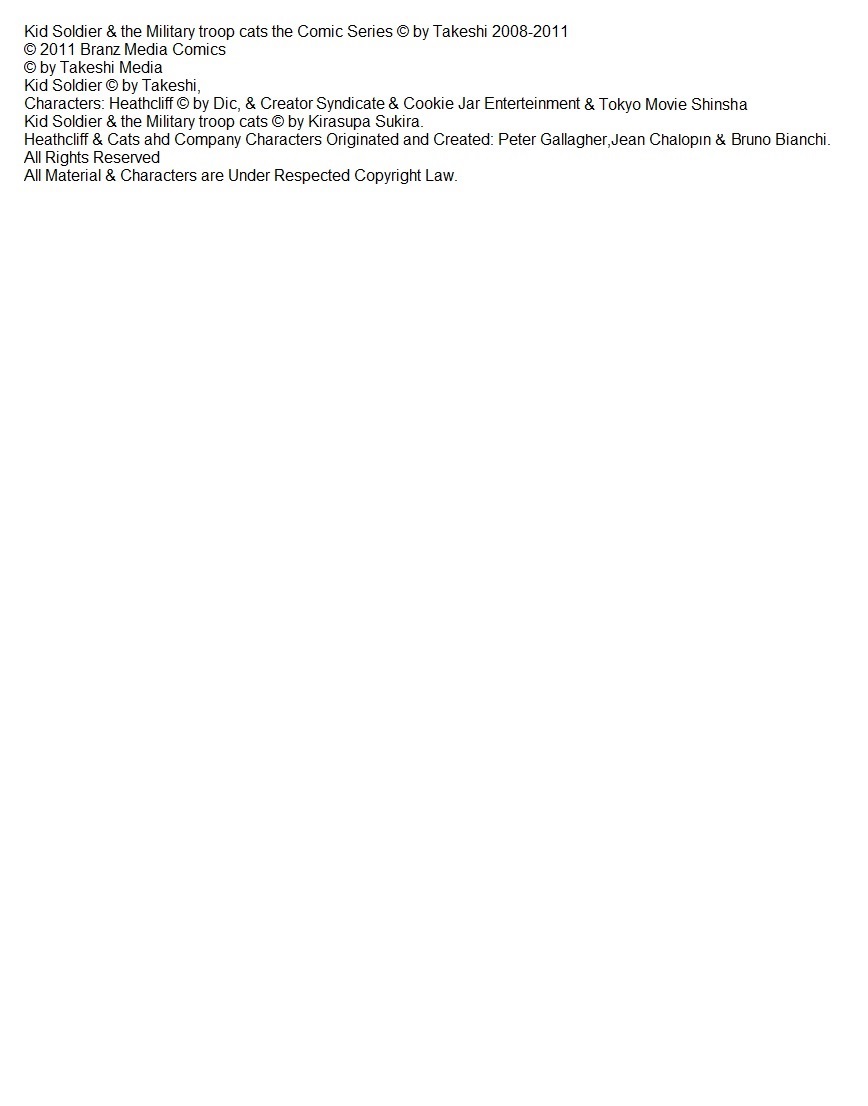 Kid Soldier and the military troop cats®. is © by Takeshi® Video games Studios inc. Characters/Heathcliff ® is © by Creator Syndicate inc.