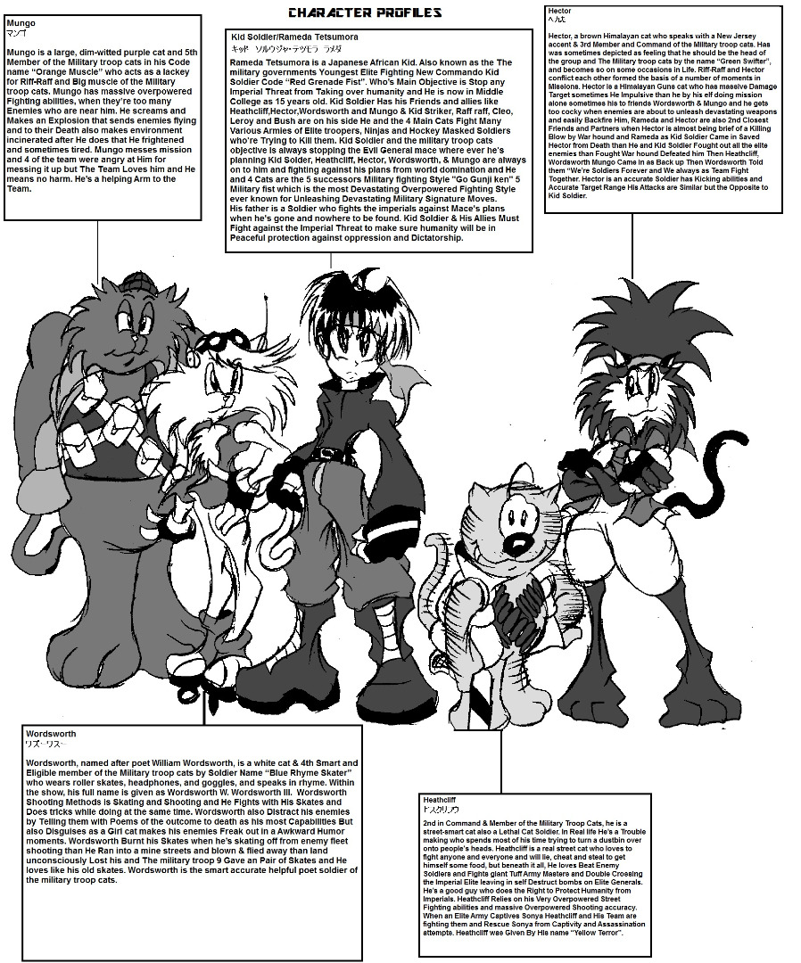 Kid Soldier and the military troop cats®. is © by Takeshi® Video games Studios inc. Characters/Heathcliff ® is © by Creator Syndicate inc.