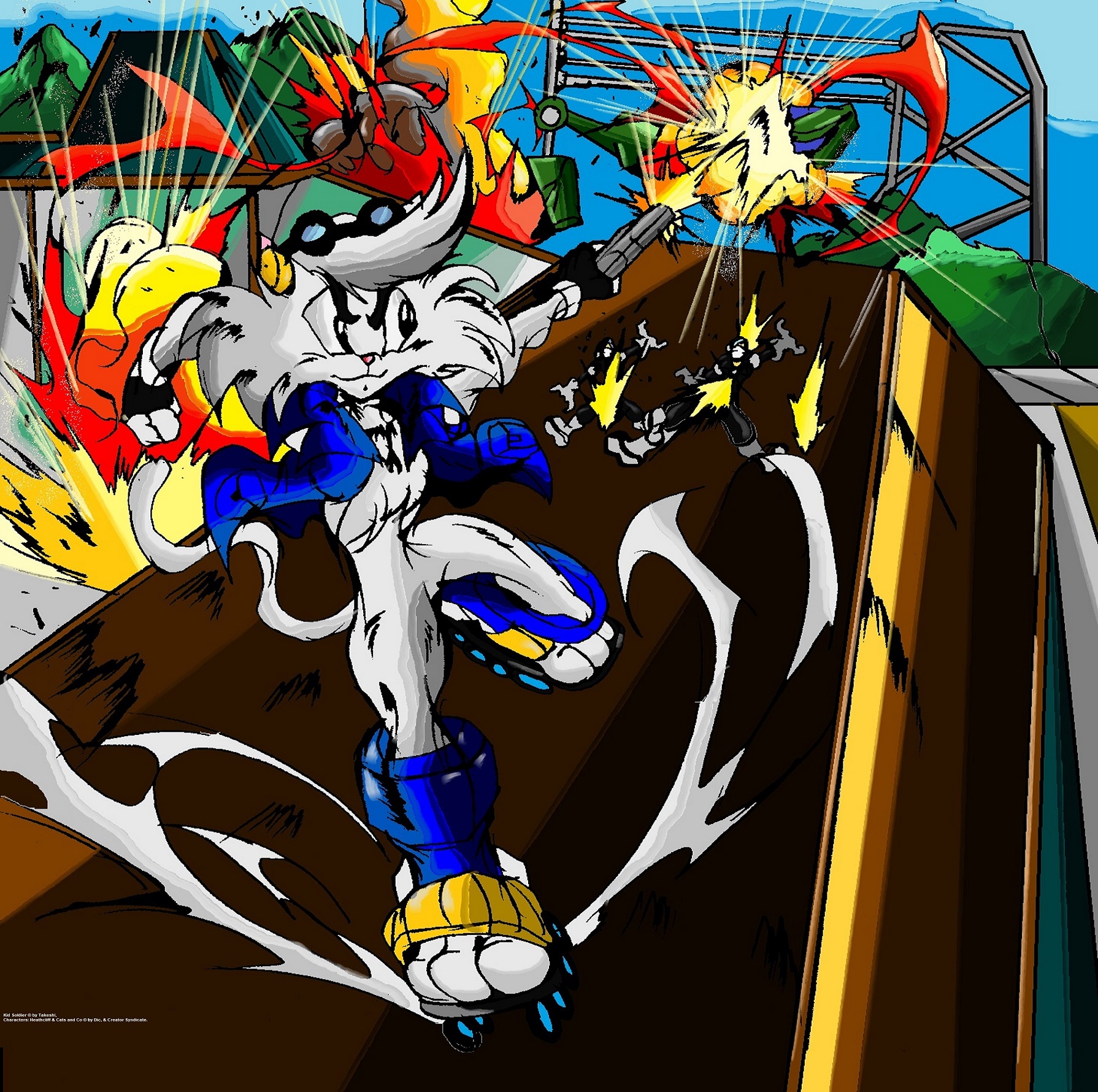Kid Soldier and the military troop cats®. is © by Takeshi® Video games Studios inc. Characters/Heathcliff ® is © by Creator Syndicate inc.
