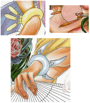 In order to get a metallic feel for the bracelets and a gem touch for the orb, I put two to three layers on the existing one.